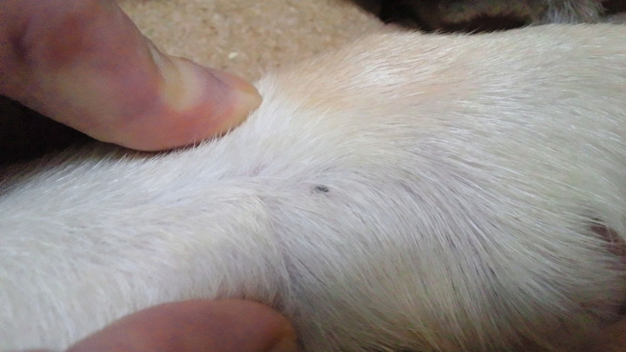 ダニの胴体だけが取れて口が噛み付いたまま皮膚内に残ってしまうので、根気が要る作業ですが仕方がありません。