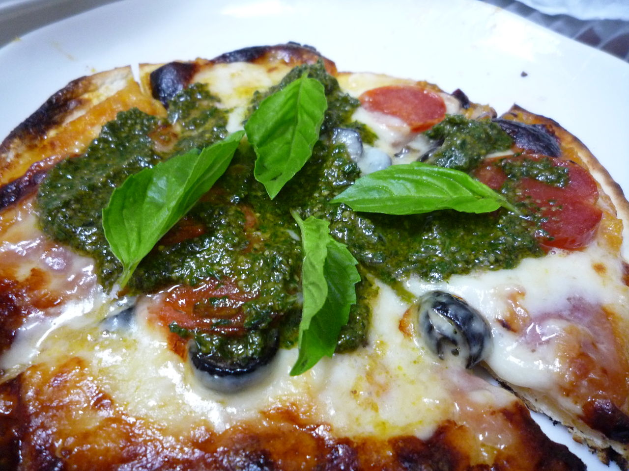 そして最後にこいつをかけて、ベランダでかろうじて残っているバジルをのせて完成。
