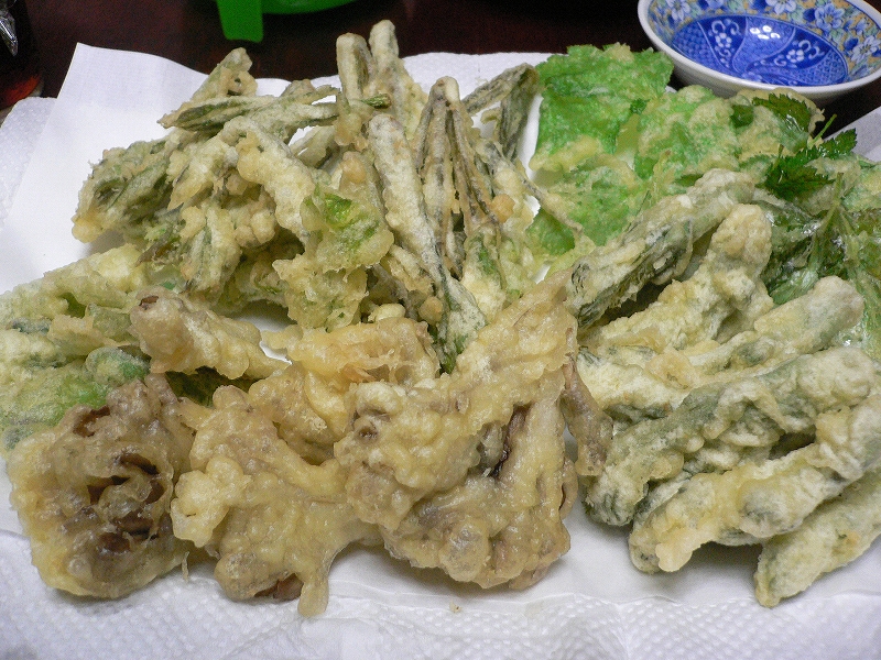 三つ葉、タラの芽、舞茸、ししとう、コシアブラ