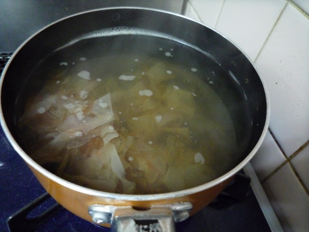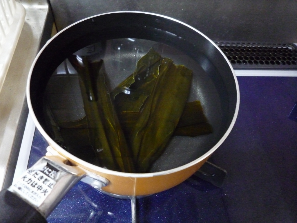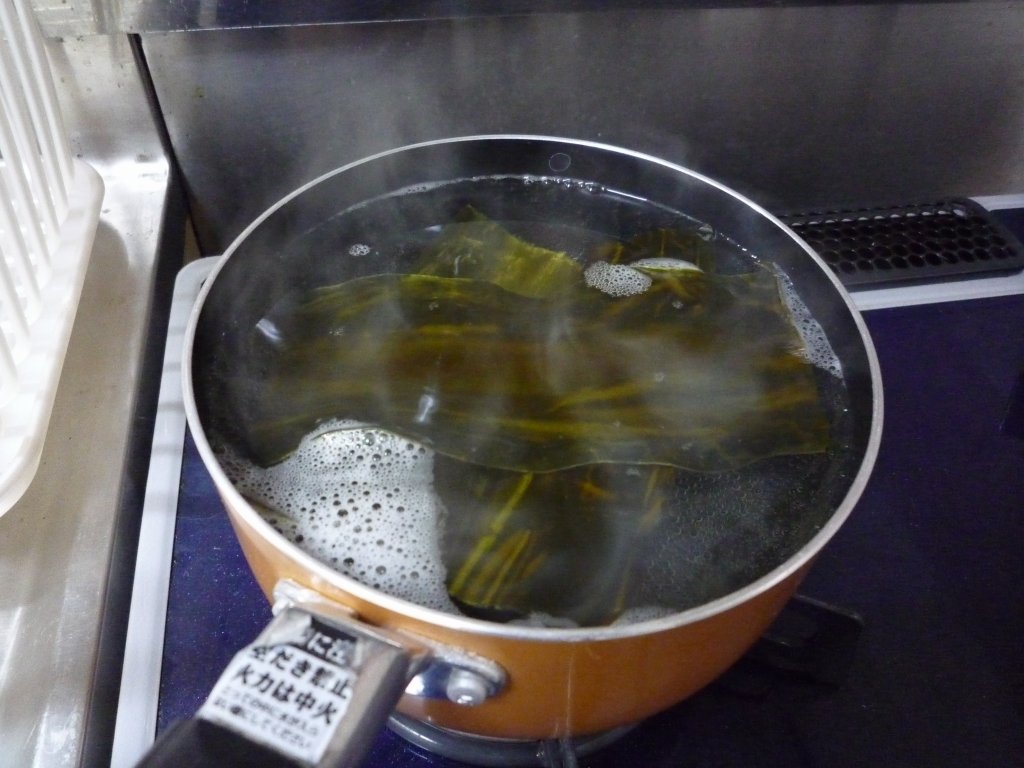 沸騰する前に昆布を取り出し・・・