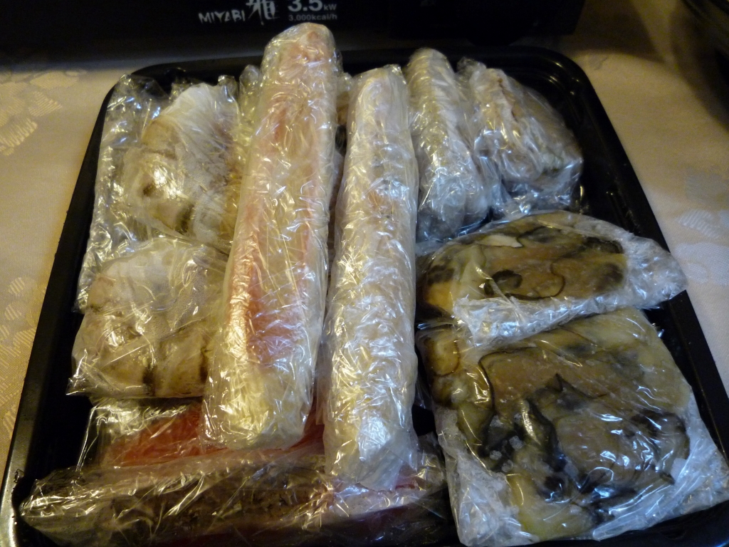 ヴァリエに入っている魚力で買っておいた魚介類も冷凍庫から取り出します。