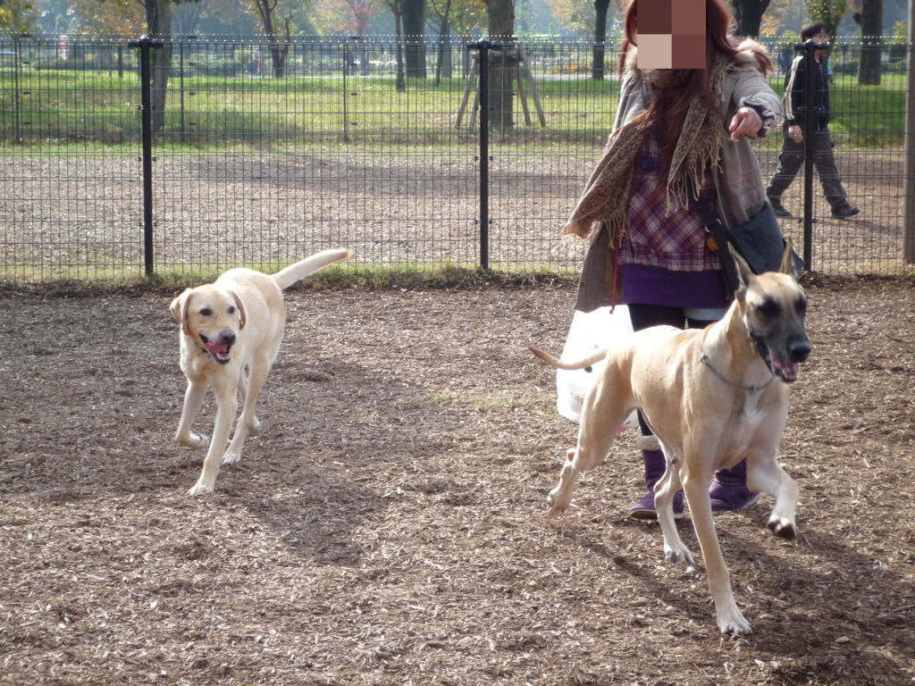 そしてその秋田犬は他の犬の尻尾を追いかけて噛んだ。