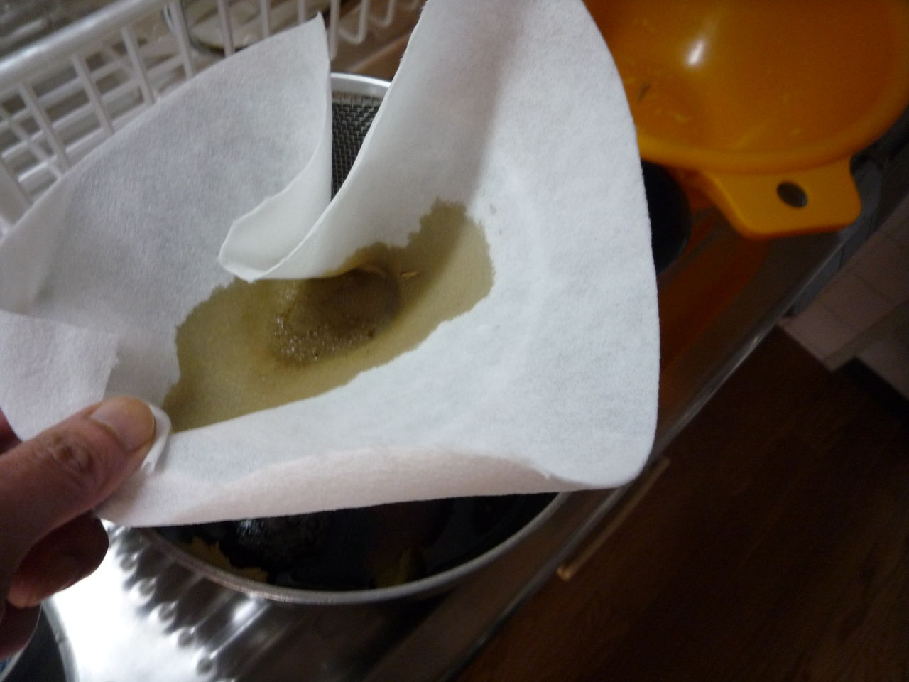 ポルチーニの戻し汁は濾して、