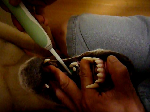 人間同様、歯と歯茎の間「歯周ポケット」からかき出してあげる感じで磨いています。