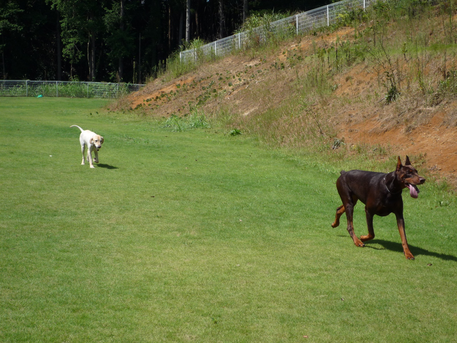 一緒に遊べそうな、大きなドーベルマンがいるじゃないか。