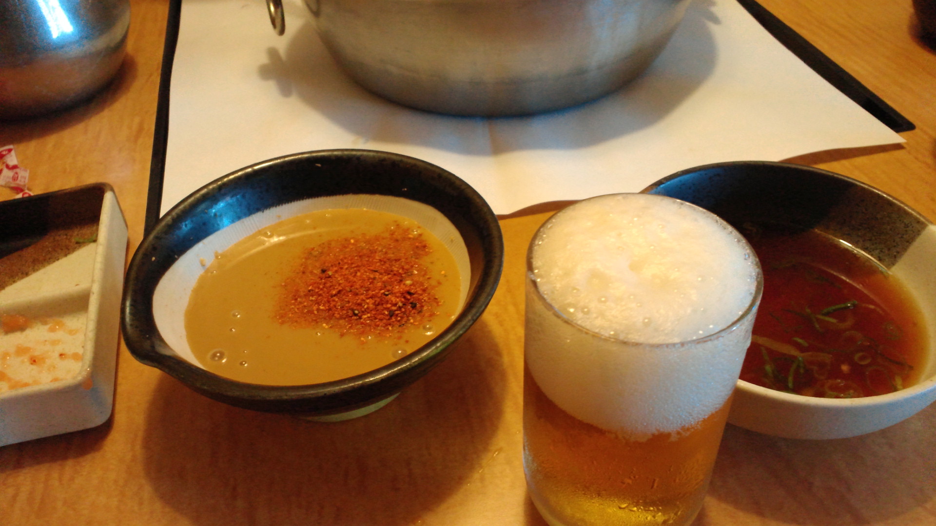 ランチタイムでおかわり自由の中華麺をたらふく食べたのですが、この胡麻ダレにラー油を入れて担々麺風にして食べたら美味しかったです。