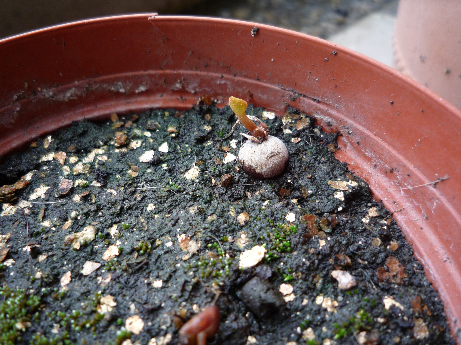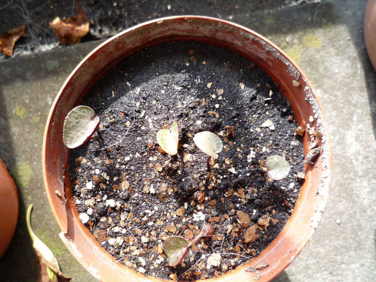 元々の小さな鉢に、昨年採取した種を蒔いておいたのですが、今のところ順調に育っています。