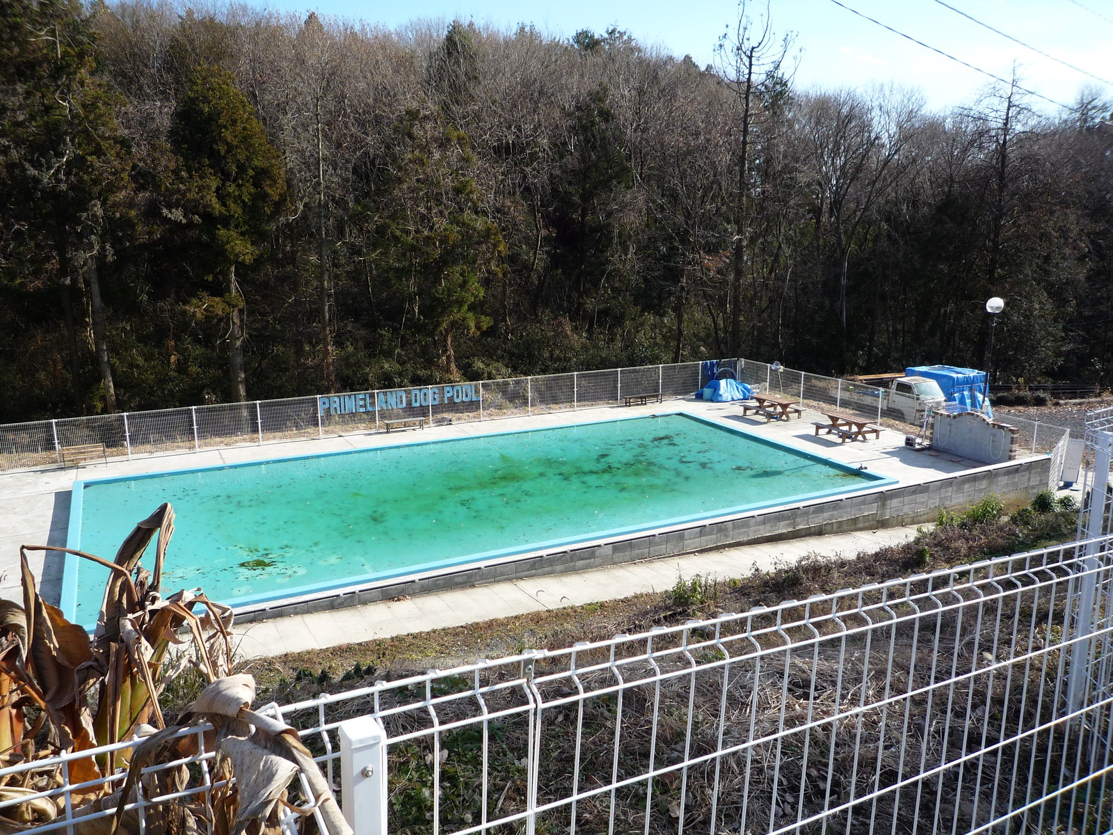 元々、入る気はありませんでしたが、今の時期無料開放されているプールは凍っていました。