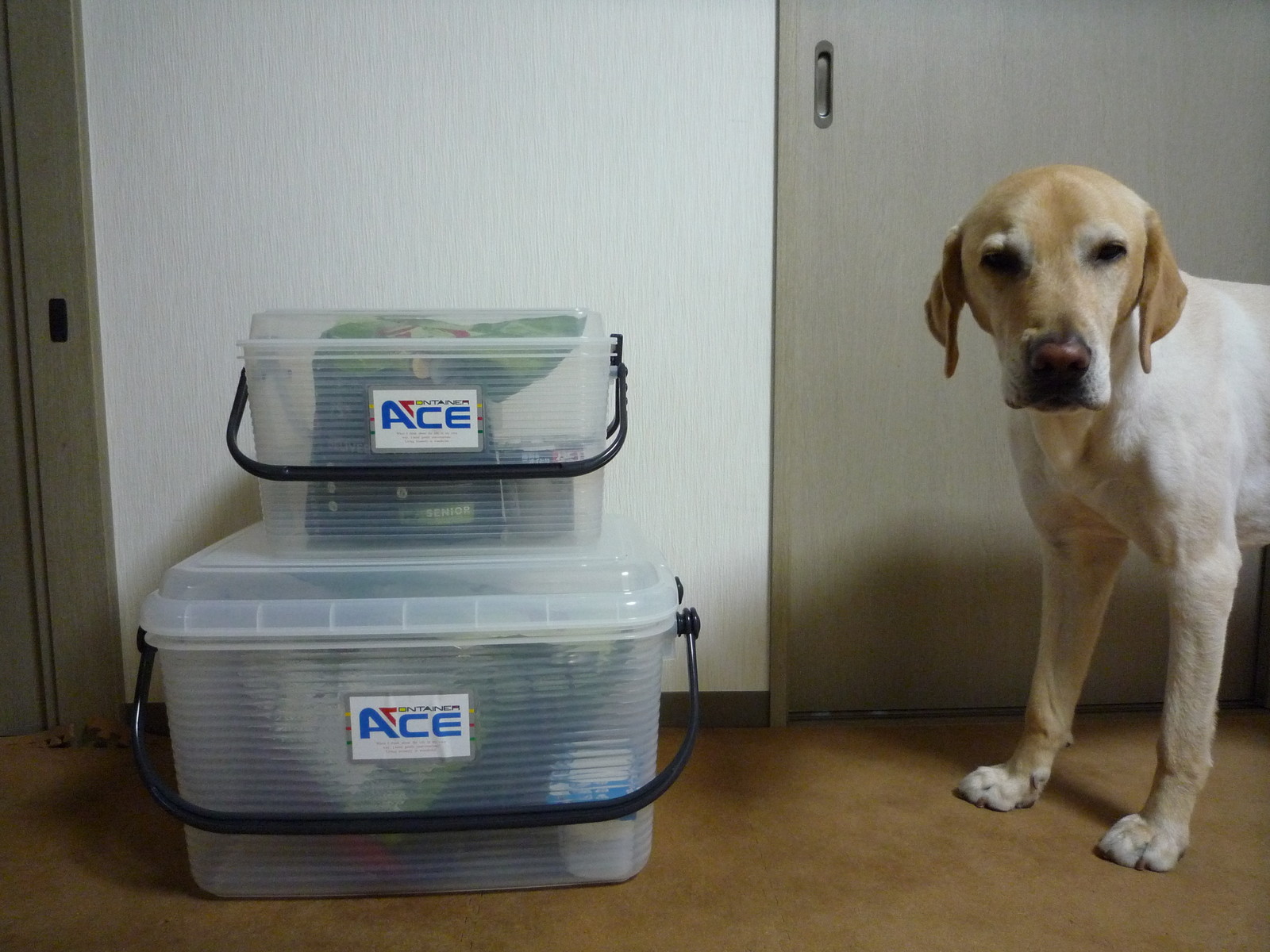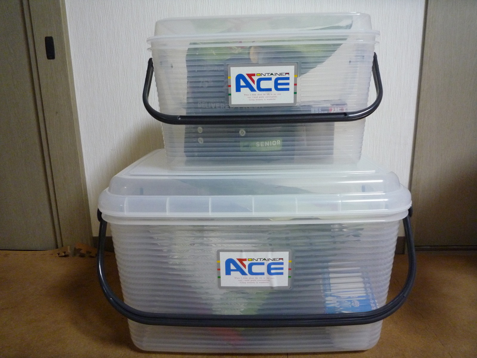 それぞれの密閉容器内には、よく押入れなどに使う除湿材を入れてあります。
