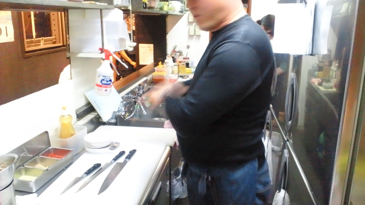 清潔なまな板で調理しているのが見られるカウンターで食べられるというのは、安全上の問題でも重要なのだと思います。