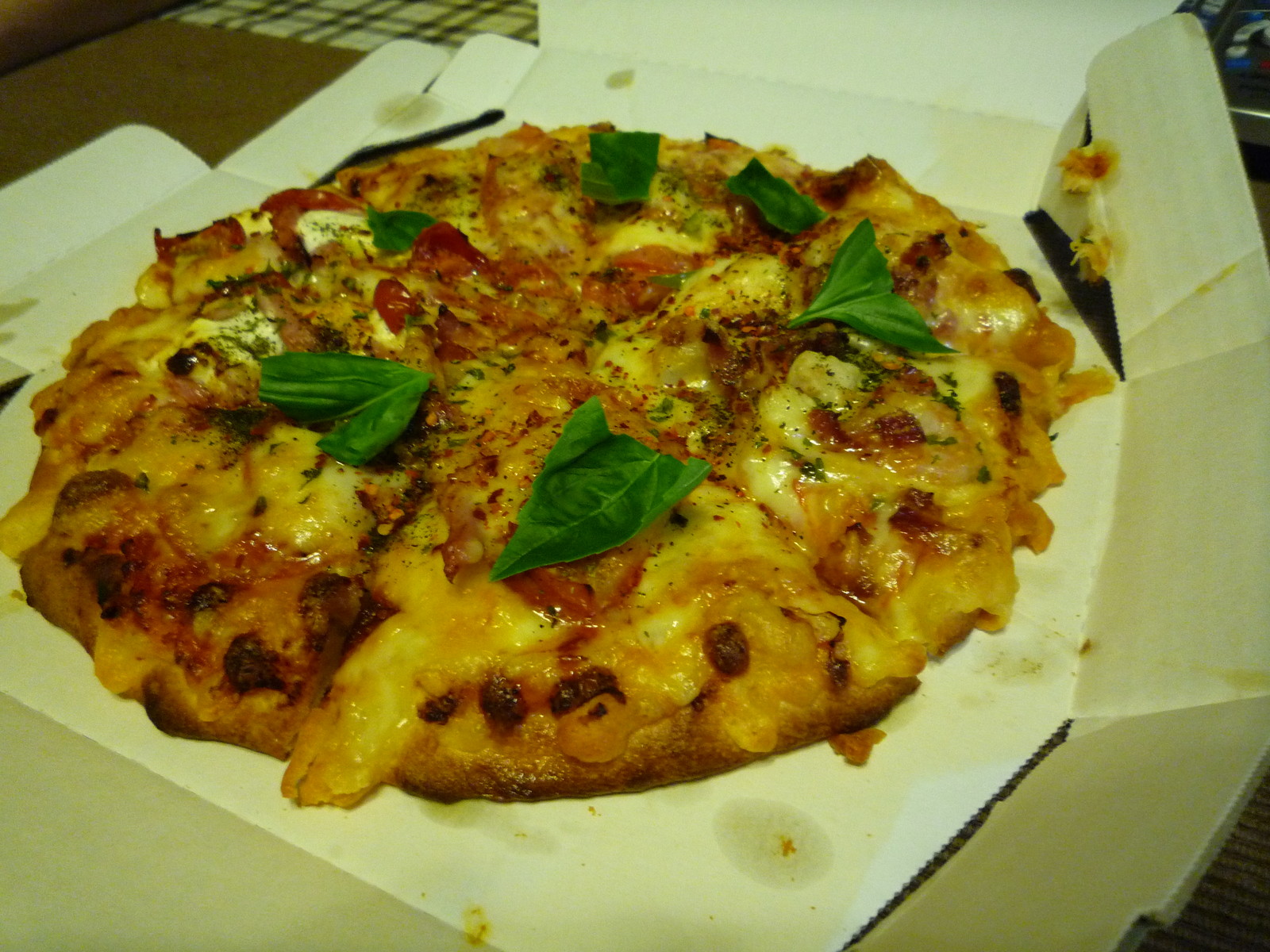 焼いてから箱に入れられて運ばれてきたピザ。