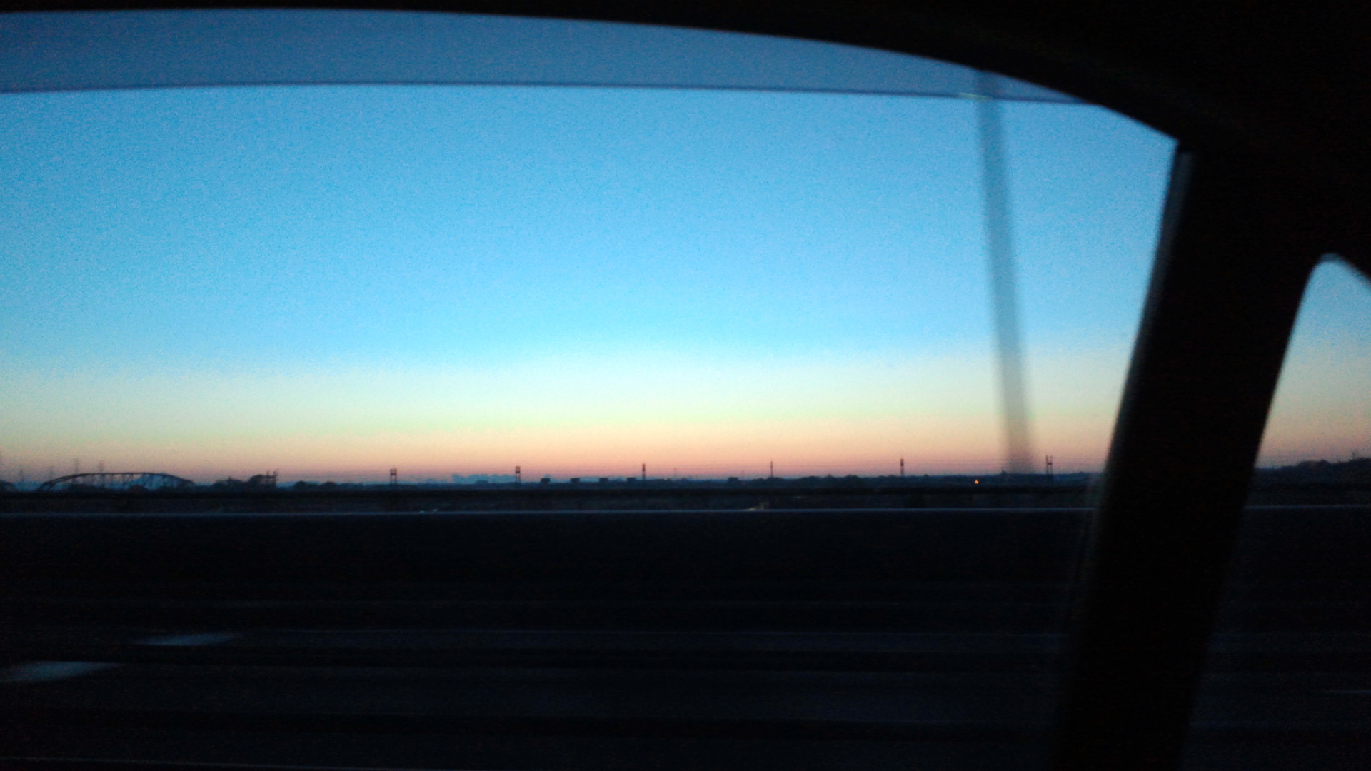 一方、こちらは車窓から昨日の朝陽、日の出前。