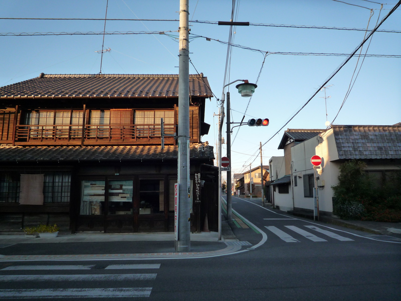 古民家も多く、一方通行を逆走する景色も散歩ならでは。