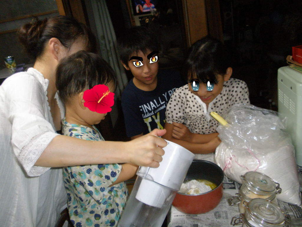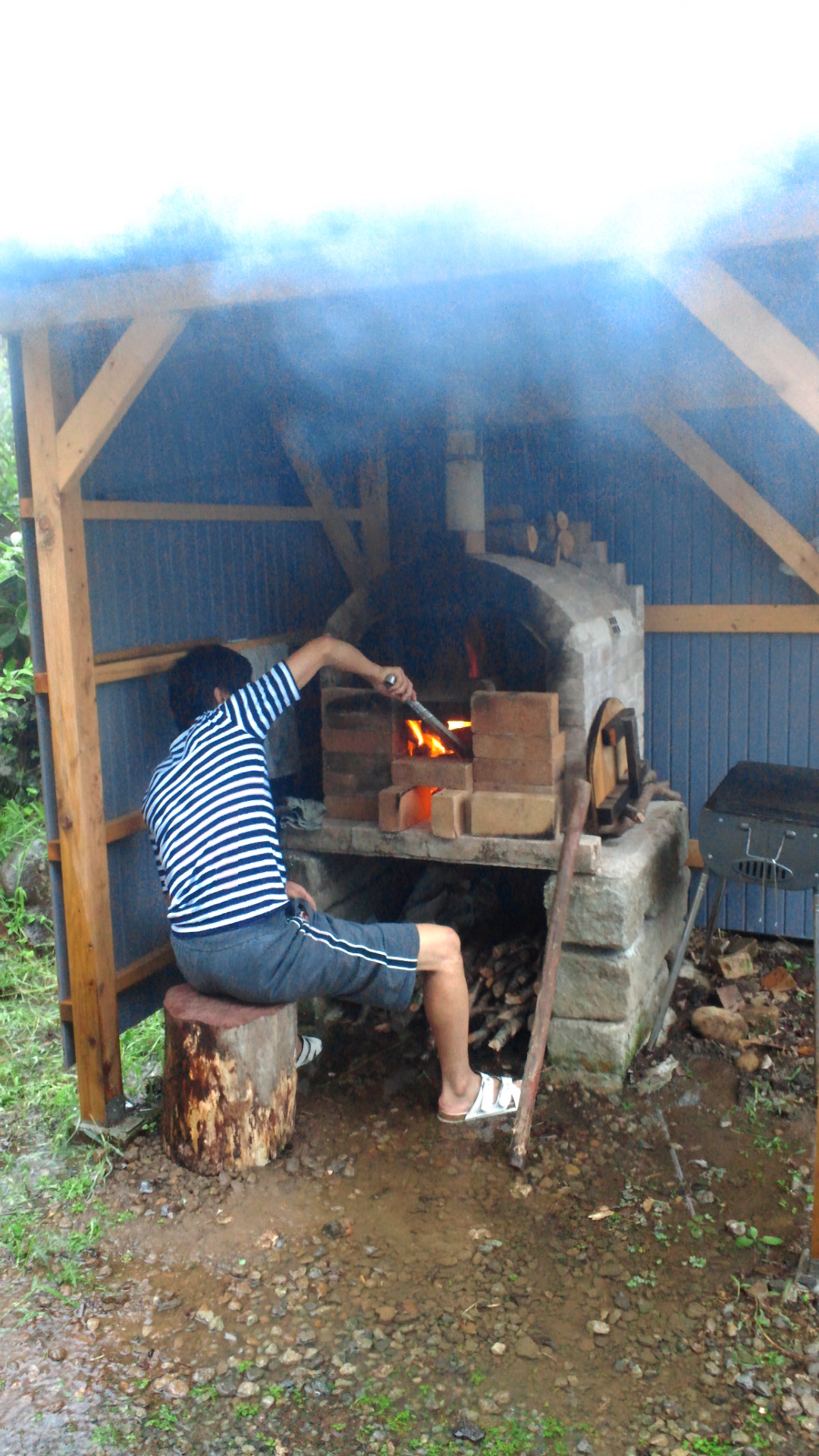 その後BBQと花火で煙を浴び、エアコンの無い部屋で汗をかきながら眠り、翌日は石窯で煙を浴びる。