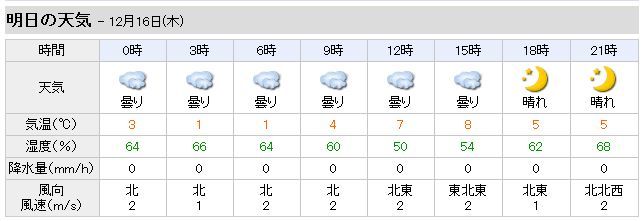 明朝の最低気温、1℃の予報。