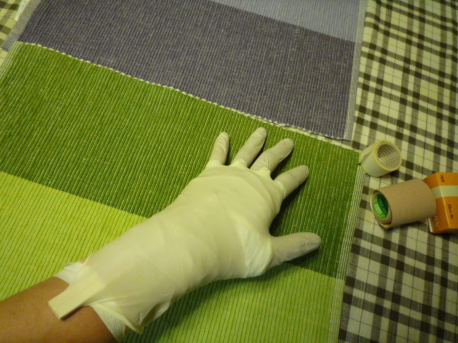 今思いついたのですが、この自己流固定、ボーリンググローブの代わりにも使えそうですね(笑)
