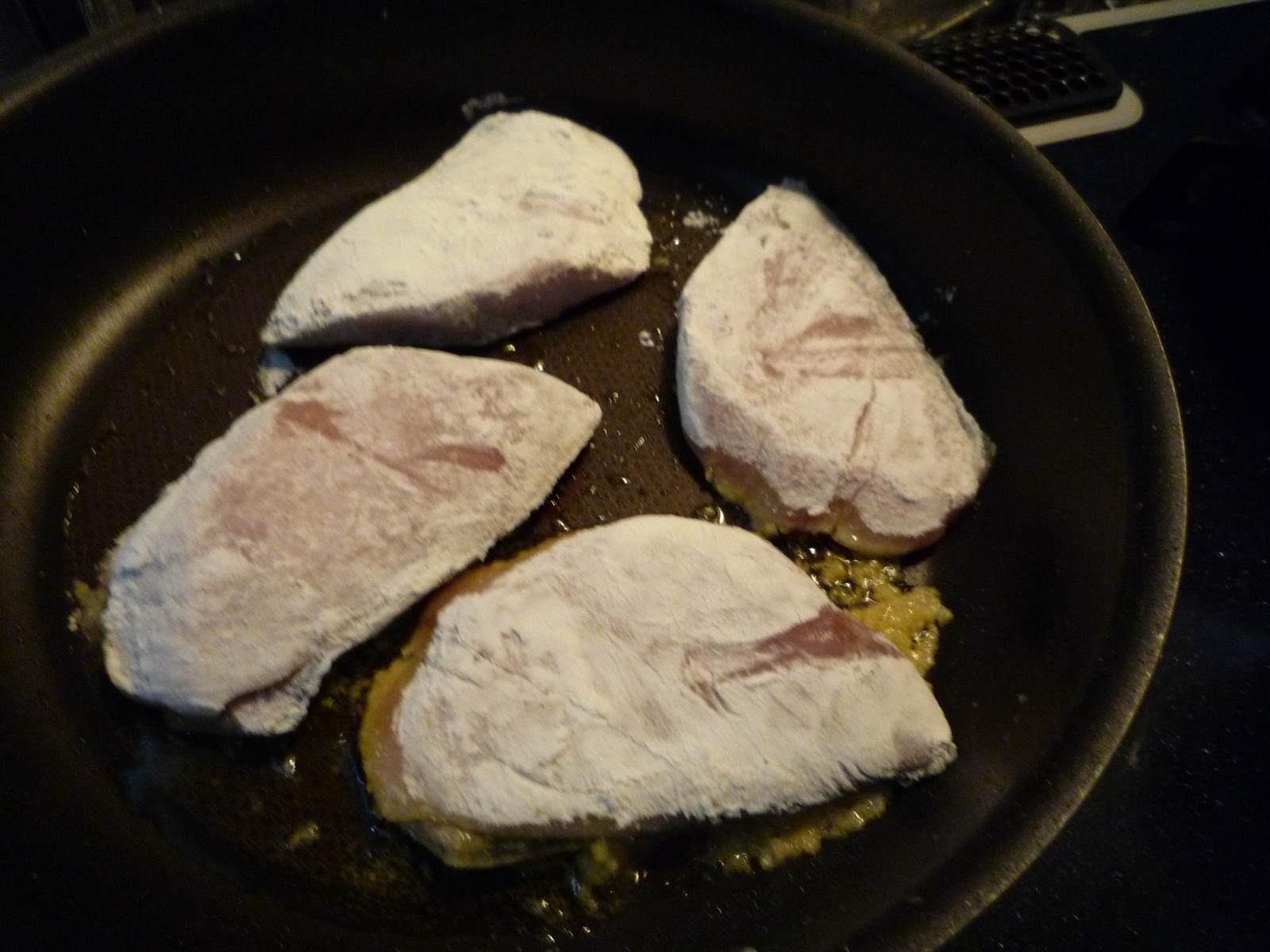 毎回、照り焼きばかりってのも面白く無いなぁと、フライパンにオリーブオイル。