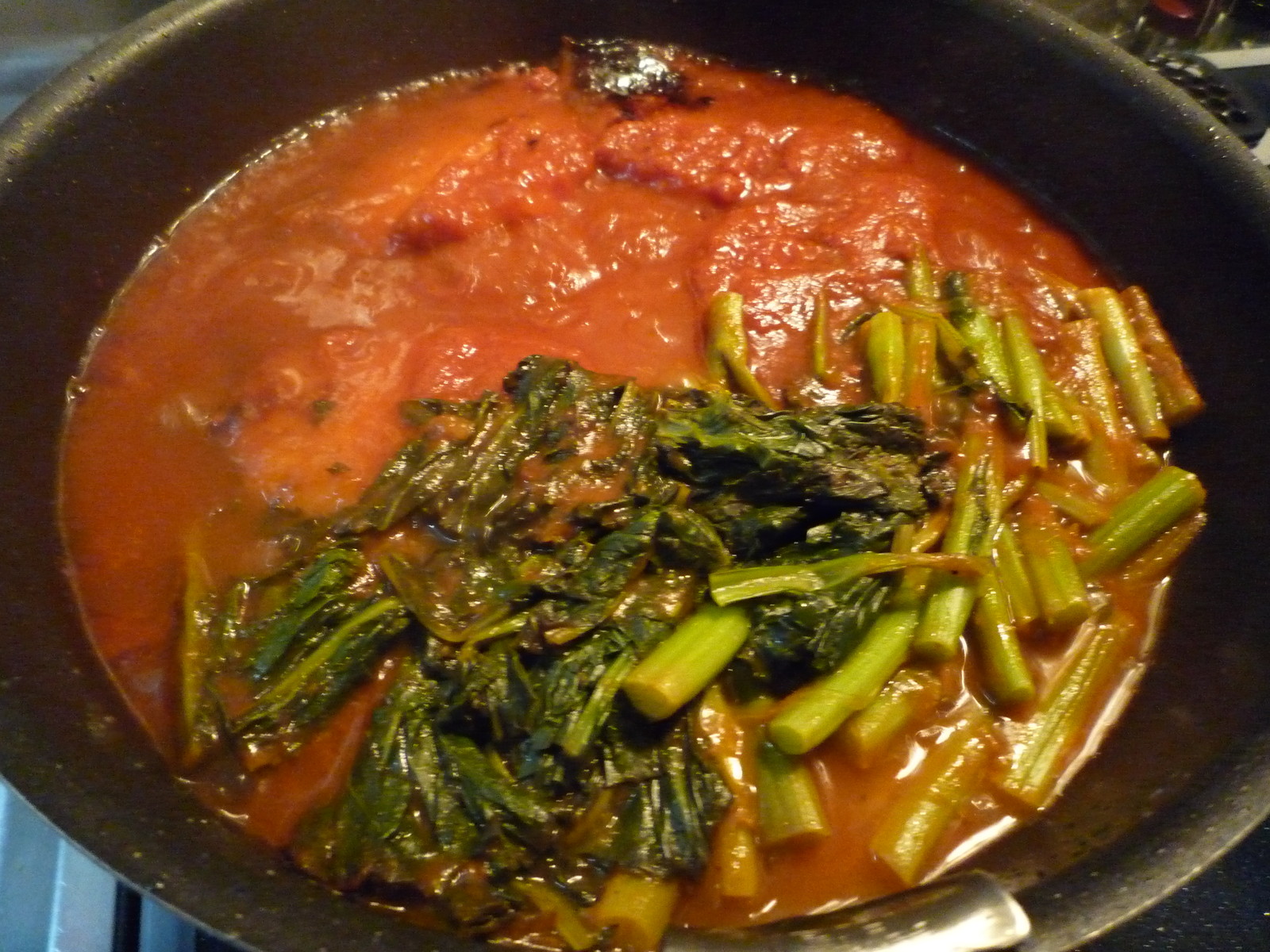 トマトと「かき菜」という野菜を投入。