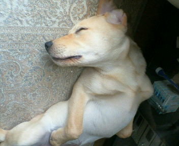 生後5ヶ月のゴールデンに「あそぼあそぼ」されても相手にしないゴン太・・・オトナになっちまったなぁ。