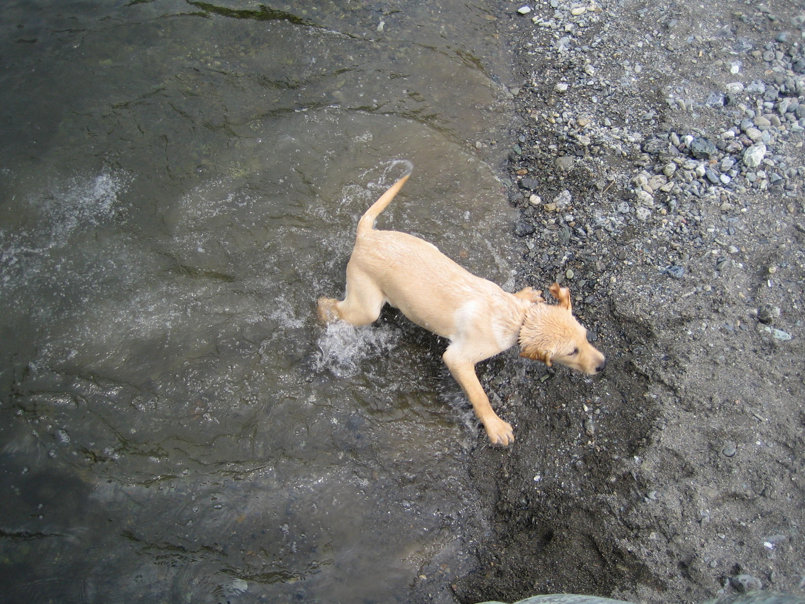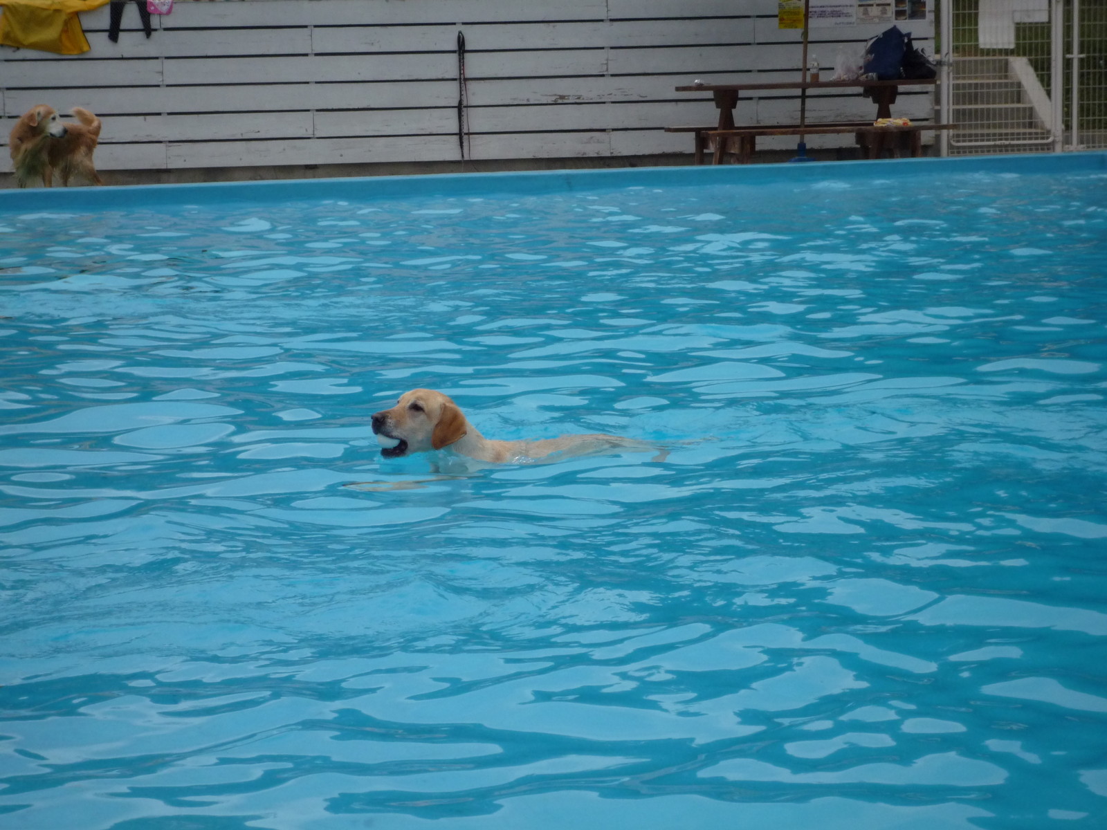 奥では先程の5ヶ月のゴールデンが初泳ぎに挑戦中。