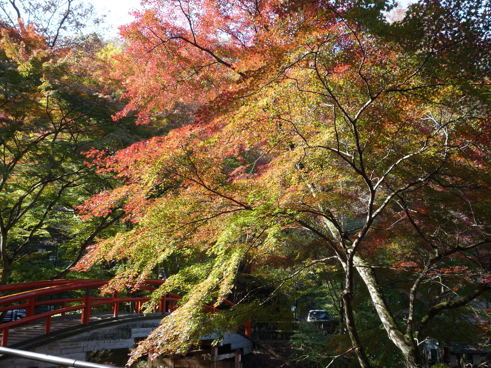 今年はあまり赤くはならないうちに落ち葉になってしまっているようで、橋の下を見ても真っ赤な絨毯・・・とはなっていませんでした。