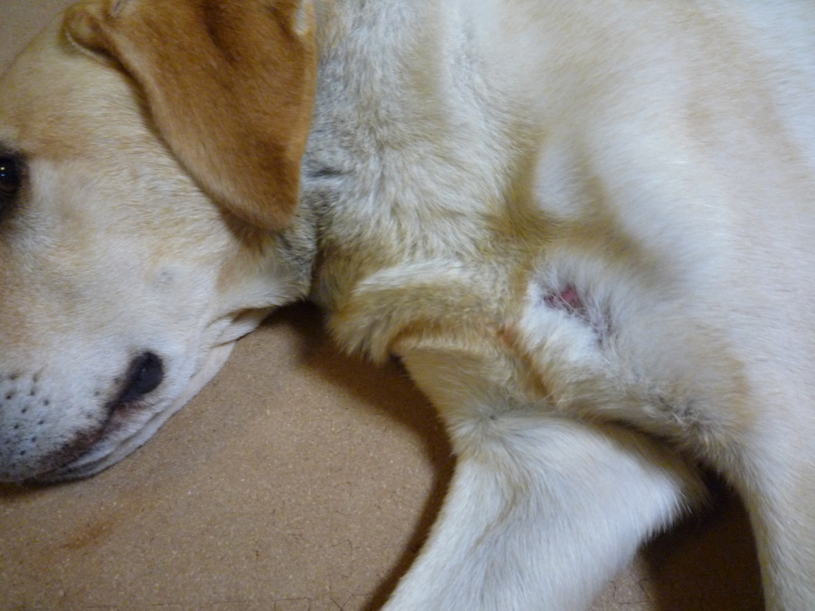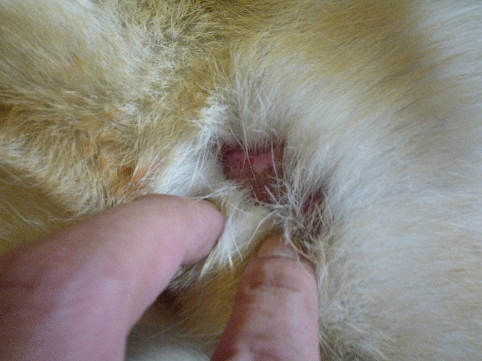 出血は無いものの、一部皮膚が毛共々剥がれてしまっている。