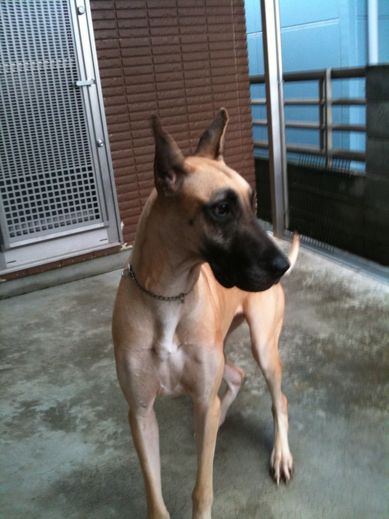 小ぶりに見えたが、体高73cm、体重46.7kgと、♀のグレートデーンでは規格内に収まっている。
