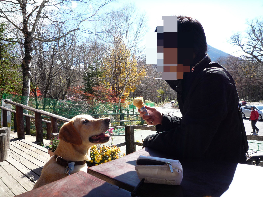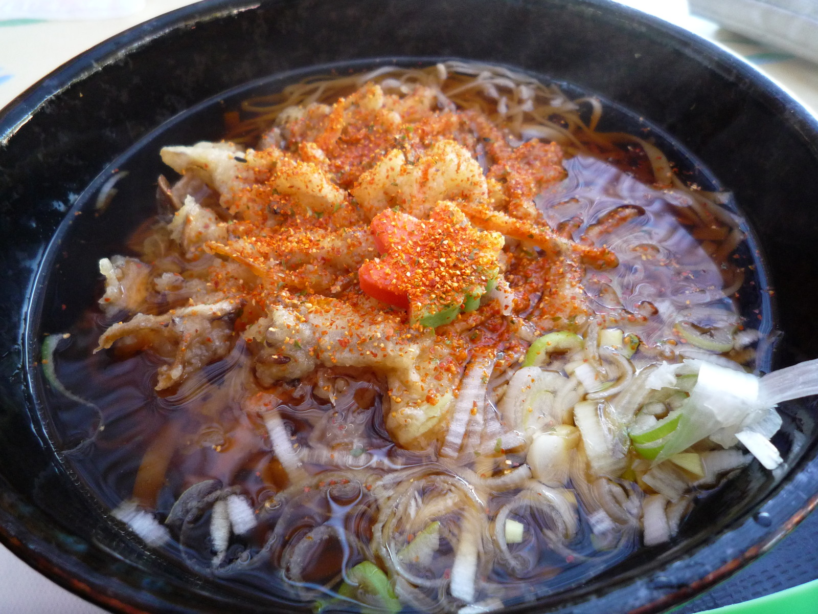パーキングエリアなのに生蕎麦?という意外性しかり、肌寒い中外で食べるというスタイルが犬連れにとっても都合が良いというか・・・