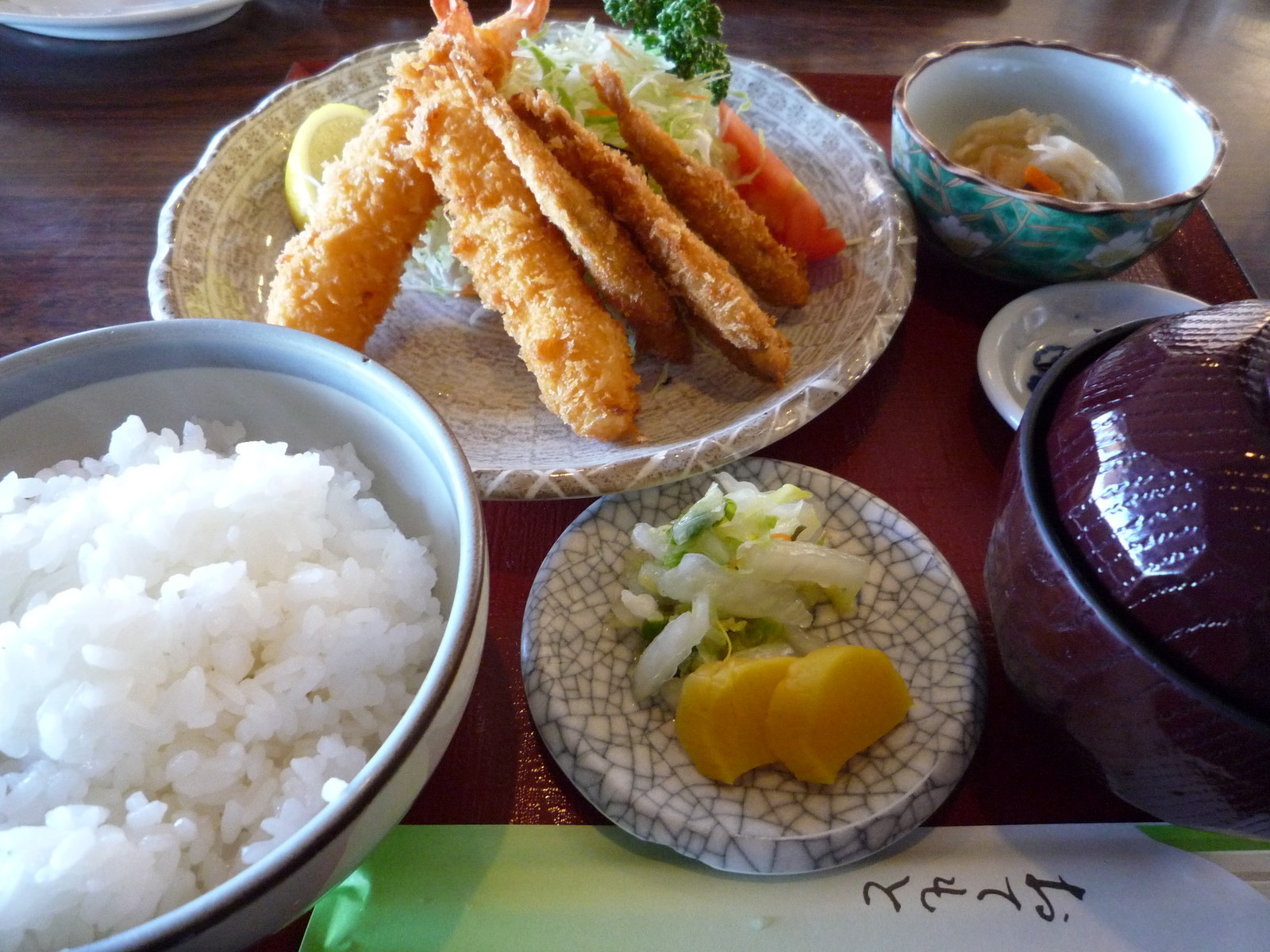 ここでは鉄板メニュー、ワカサギフライ定食なのですが、嬉しい海老フライとのセット定食が!