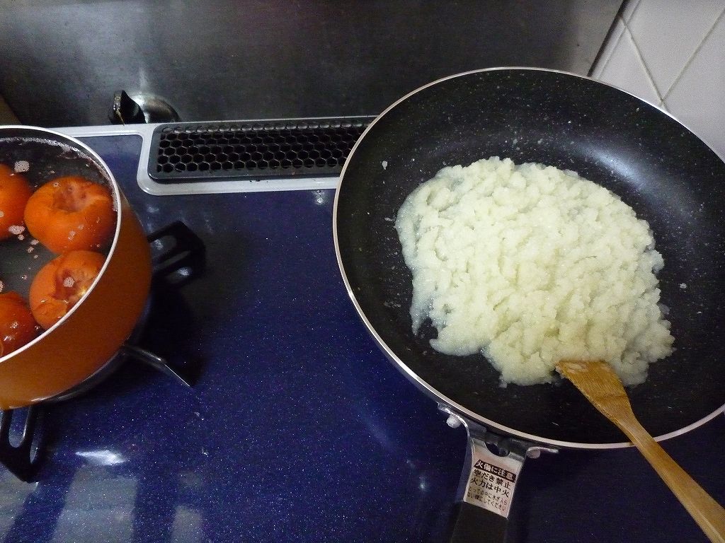 桃太郎などのトマトと甘い玉葱が入手できれば一からソースを作って、折角だからと生パスタ作りからやりたいんですけどね。