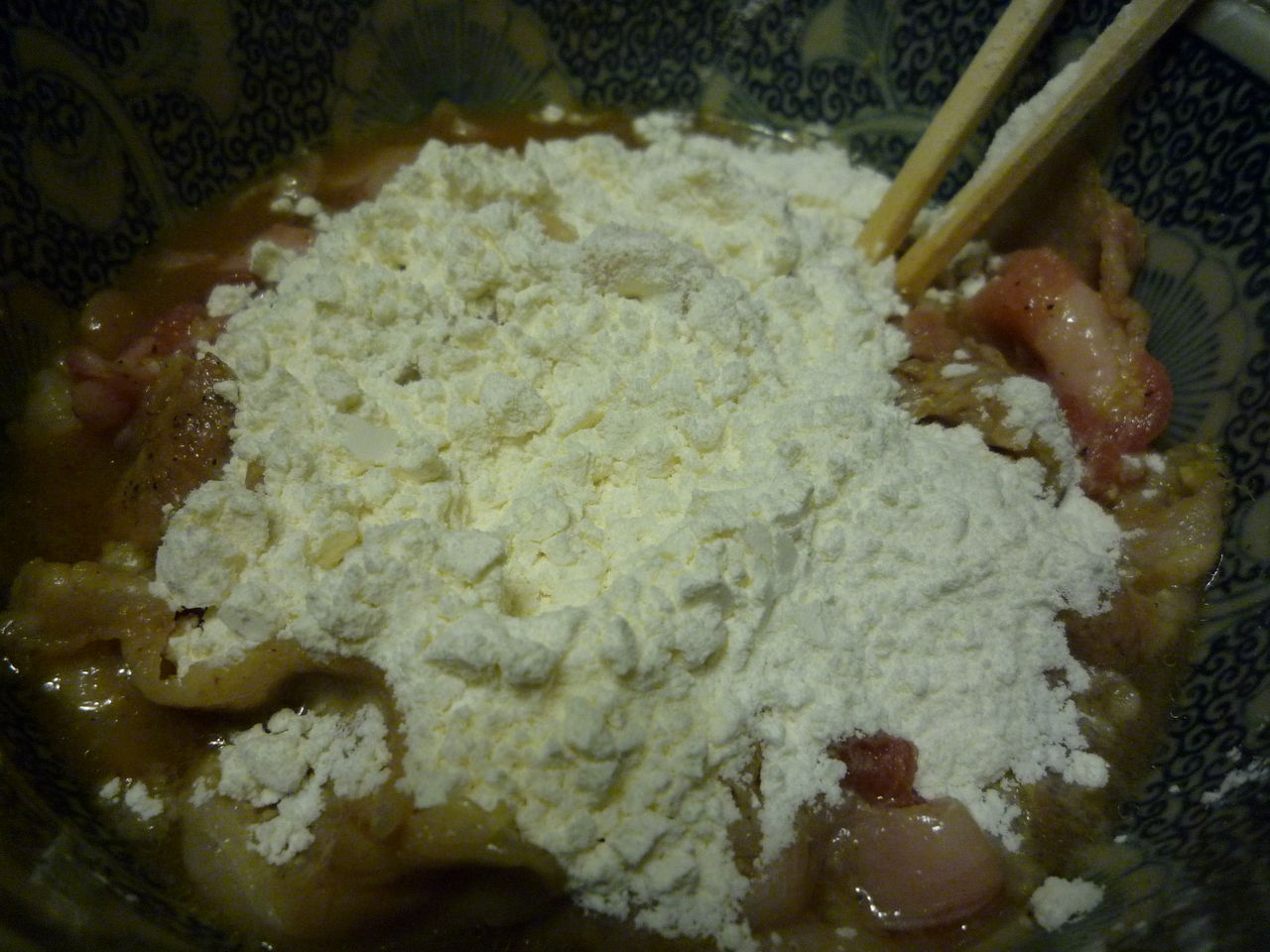 豚バラ肉に塩コショウして10分位置いておき、酒、みりん、すし酢、醤油、生姜、にんにくで和えて、冷蔵庫に置いておきます。