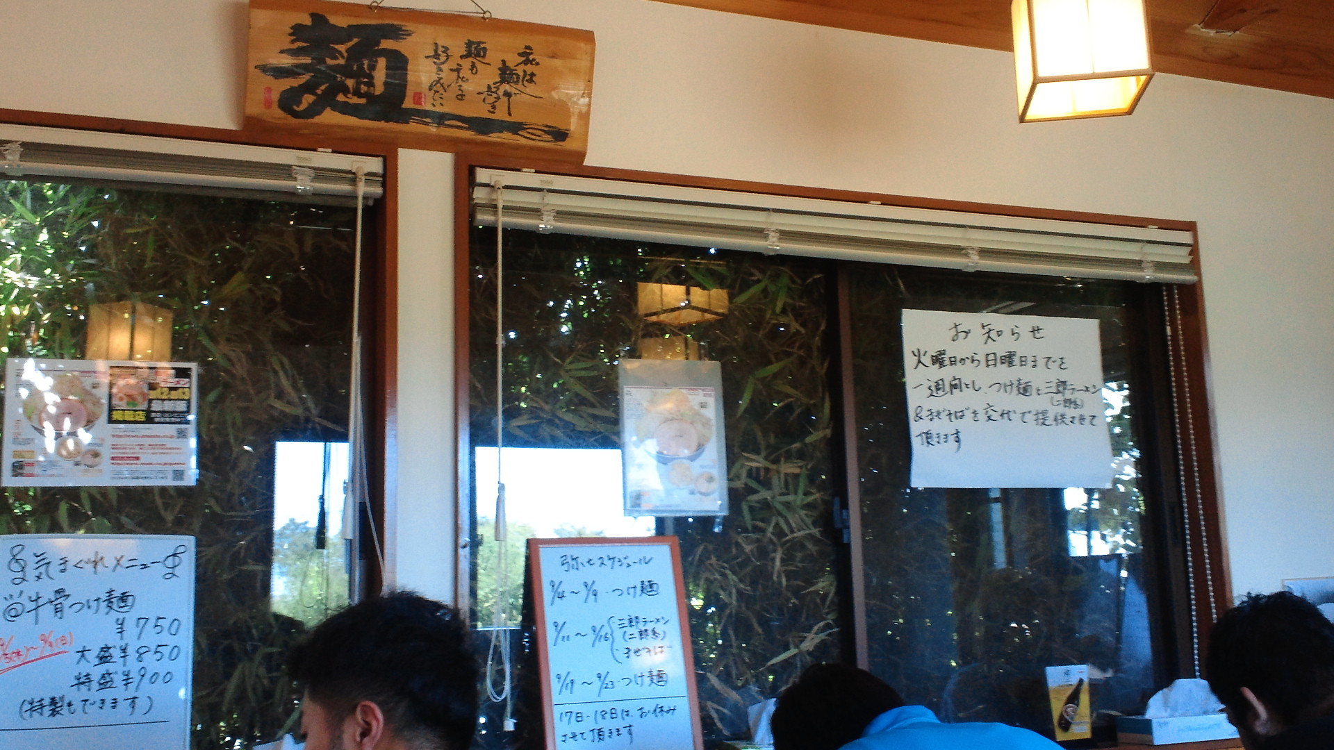 ホワイトボードにスケジュールが書かれていて、ギリギリつけ麺Dayでラッキーでした。