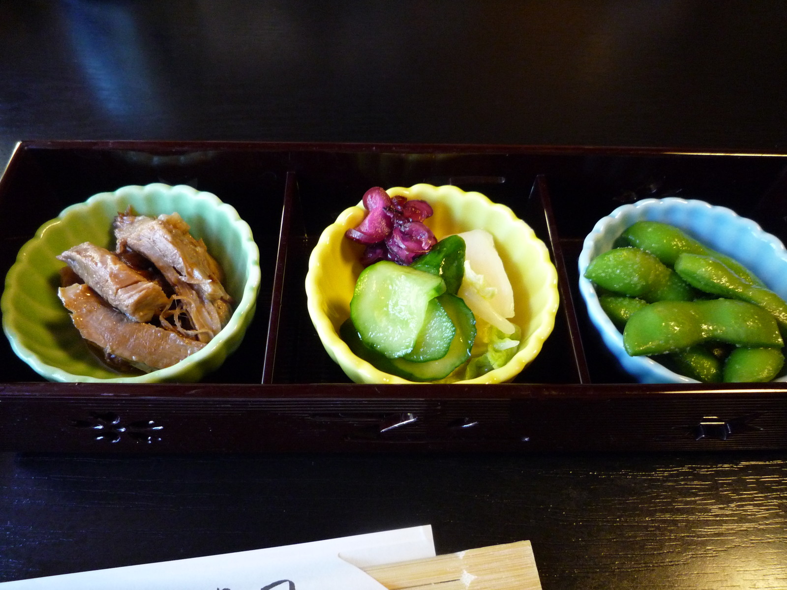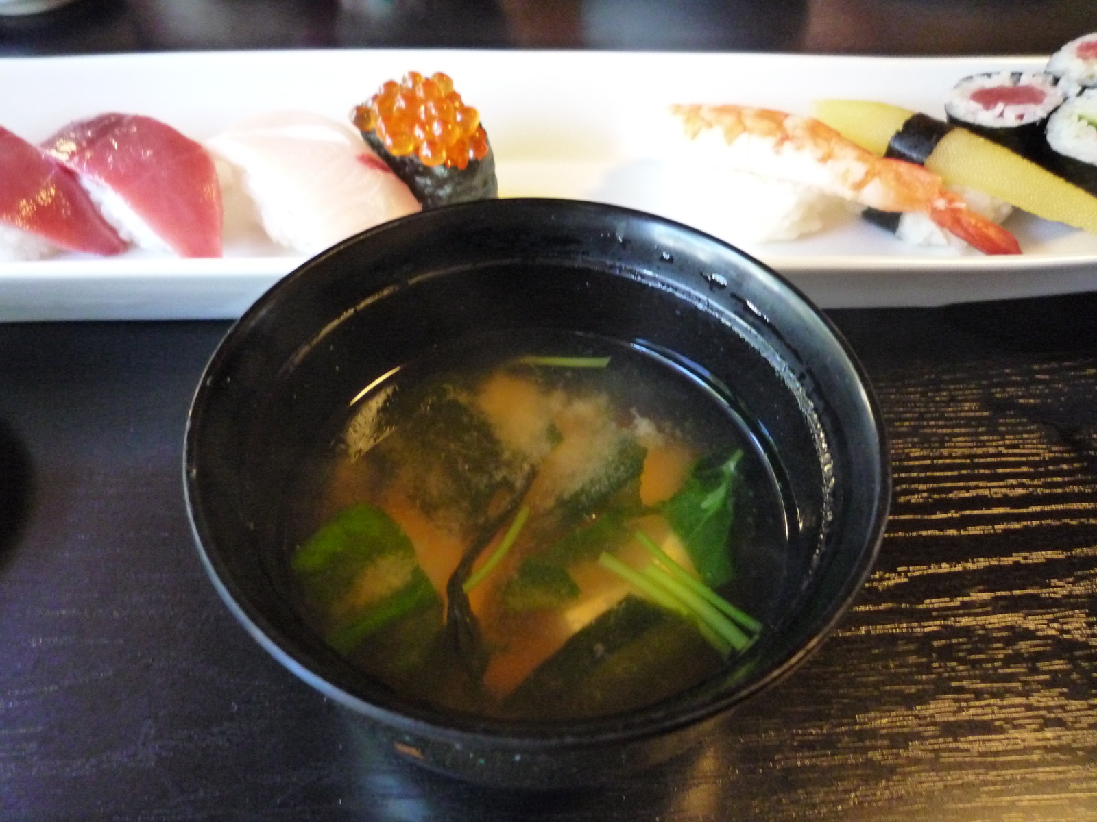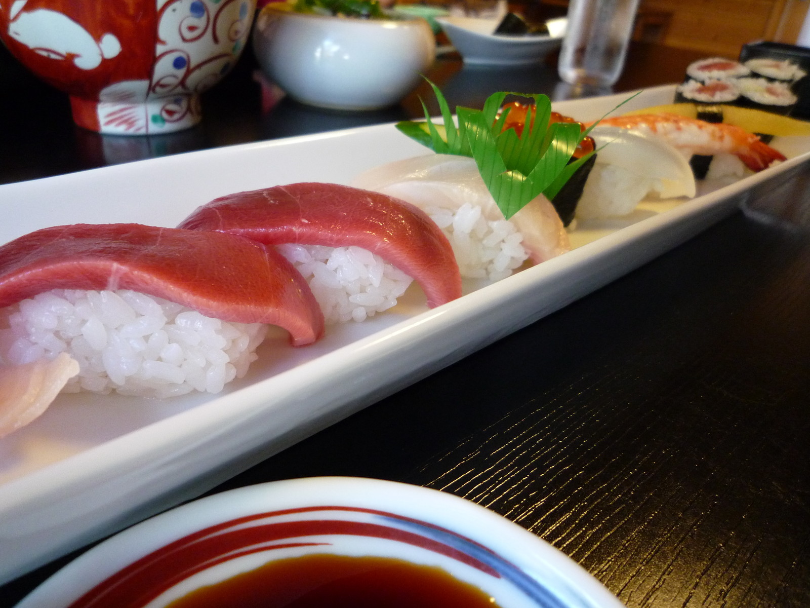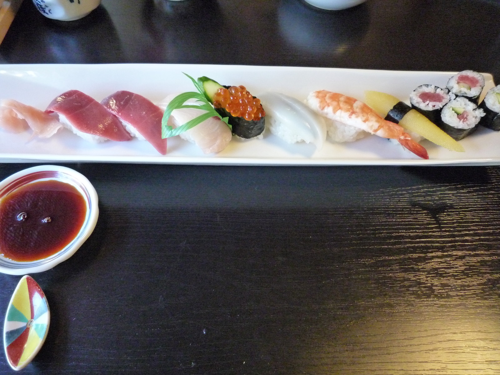 めちゃくちゃ長いお皿に目を取られていたら、醤油を入れ過ぎた。